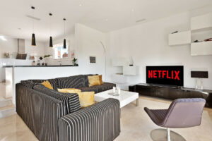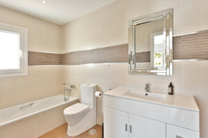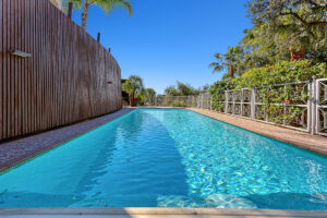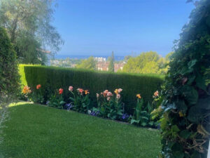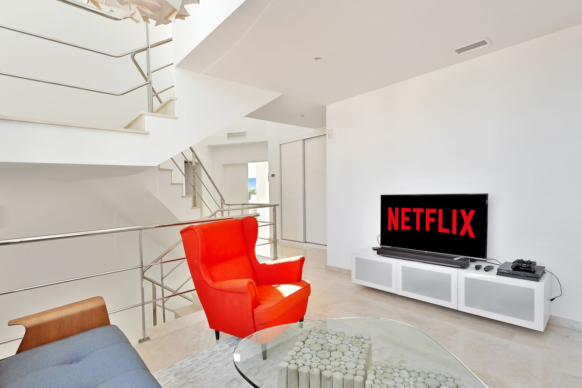 La propiedad está construida en 3 plantas sobre una parcela de 1438 m2 y se encuentra en muy buen estado. En la planta baja hay 2 amplios salones (uno con chimenea de biocombustible), gran comedor, cocina moderna de planta abierta totalmente equipada con cafetera empotrada y frigorífico/congelador americano. Junto a la cocina hay un lavadero con lavadora y secadora. También hay un aseo de invitados. En este nivel hay acceso directo a través de grandes puertas correderas a una terraza cubierta de 70 m2 con sala de estar, comedor para 8 personas y una gran barbacoa de gas, todo ello con vistas a una zona ajardinada con césped y vistas al mar. Desde esta zona ajardinada hay 10 escalones que bajan a la gran piscina climatizada, que es muy privada.