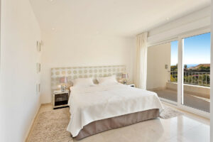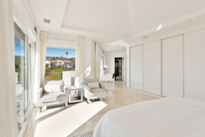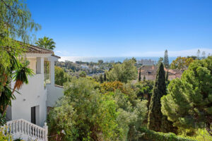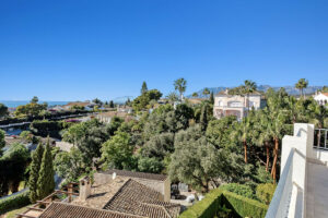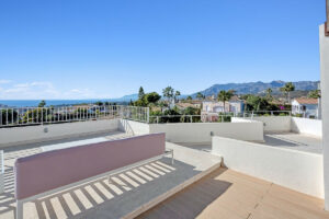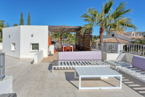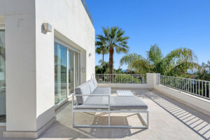 Desde el primer piso hay escaleras hasta el nivel superior de la villa donde encontrará una impresionante terraza en la azotea de 90 m2 con un comedor cubierto equipado con una barbacoa de gas y un refrigerador junto con un área chill-out desde donde podrá disfrutar de majestuosa panorámica vistas al mar Mediterráneo y Marbella con su espectacular cordillera de La Concha.