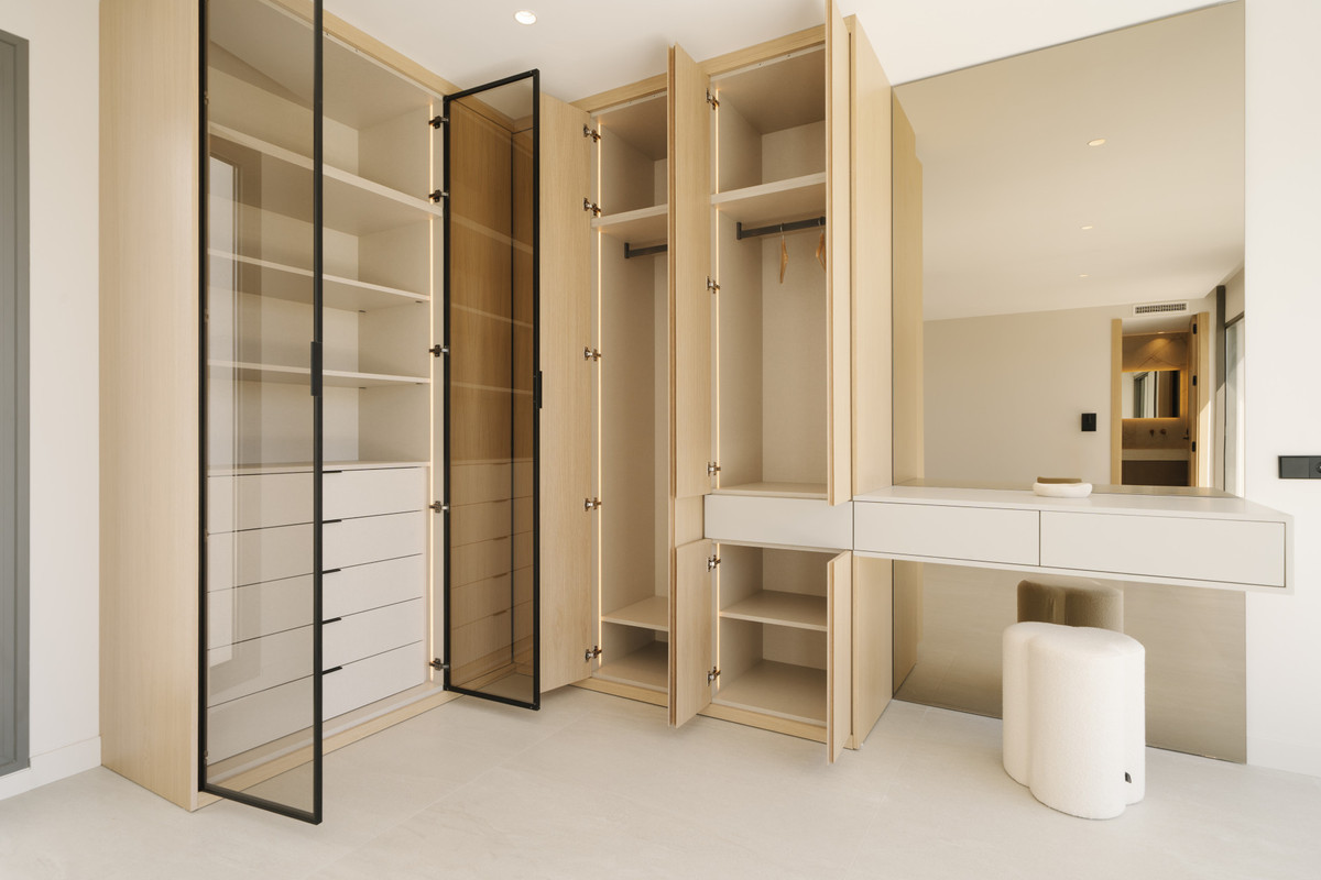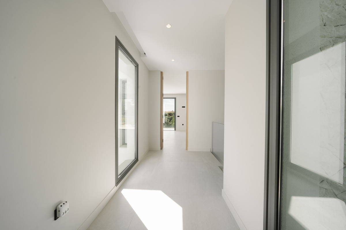 El versátil sótano ofrece infinitas posibilidades, ya sea para gimnasio, cine en casa, sala de juegos, bodega o incluso un apartamento de invitados. En la planta superior, la suite principal impresiona con un balcón privado que muestra vistas panorámicas al mar, un tocador de diseño, amplios armarios y un lujoso baño en suite con doble lavabo y ducha a ras de suelo.