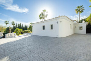 Esta hermosa villa recientemente renovada está situada en una gran parcela, en una zona muy tranquila y privada de Estepona. A poca distancia encontrará todo lo que necesita, playas maravillosas, paseos al lado del mar y todas las pintorescas ciudades españolas de la Costa del Sol. Con una orientación sur, disfruta de mucha luz natural durante todo el día, y su diseño permite una hermosa vista de la piscina, alrededores y jardines tropicales.