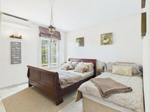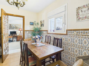 El interior se articula alrededor de un amplio salón–comedor a dos niveles con chimenea, además de una luminosa cocina con comedor adjunto. La vivienda dispone de cuatro dormitorios bien proporcionados —dos al norte y dos al sur—, dos de ellos con baño en suite, todos con abundante luz natural y amplios armarios.