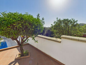 La parcela de 665 m² ha sido diseñada con mucho cuidado en varios niveles, creando distintas zonas exteriores pensadas para disfrutarse durante todo el año. Con orientación suroeste, la propiedad recibe sol durante todo el día y cuenta con una terraza cubierta con vistas a la piscina, una cocina exterior con horno de leña y una acogedora zona de estar rodeada de fragantes jazmines y una variedad de árboles frutales.