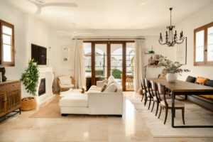 La planta principal ofrece un diseño de concepto abierto que integra salón, comedor y cocina, todo con acceso directo a la terraza, el jardín y la piscina privada. La luz natural, los tonos suaves y los acabados contemporáneos crean un ambiente elegante y acogedor.