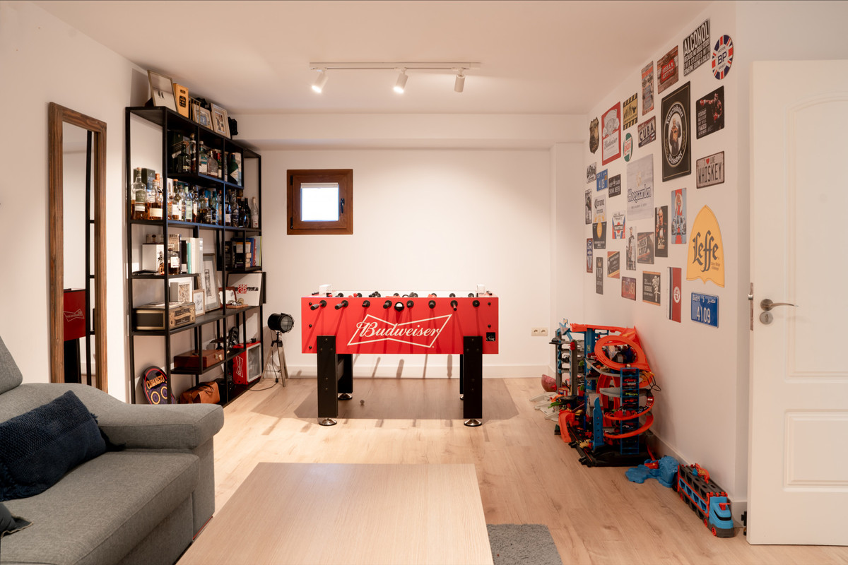 La villa incorpora ahora una planta baja renovada, que añade un cuarto dormitorio con baño, una amplia sala de juegos, y espacios flexibles perfectos para invitados o familia. Un despacho independiente ofrece un área tranquila para trabajar, mientras que el garaje garantiza comodidad y seguridad.