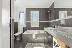 En la planta inferior de la villa se encuentra el cuarto dormitorio con baño en suite, así como un amplio garaje. Esta planta ofrece muchas posibilidades para ser rediseñada por los nuevos propietarios, pudiendo convertirse en un apartamento independiente, gimnasio o zona de ocio, si no se requiere un cuarto dormitorio.