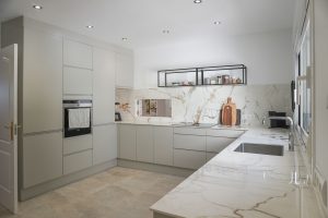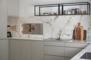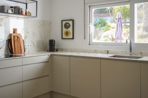 La cocina fue completamente renovada hace tres años y está equipada con mobiliario Designa Kitchen de estilo nórdico, con elegantes armarios y soluciones de cajones que ofrecen funcionalidad y comodidad. La cocina cuenta con electrodomésticos nuevos, entre ellos un frigorífico combi extra ancho, una vitrocerámica con extractor integrado, suelo nuevo y un sistema Quooker que proporciona agua hirviendo al instante.