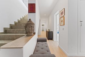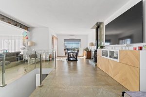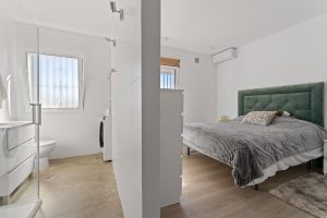 Situada sobre una parcela de 527 metros cuadrados, la vivienda ha sido proyectada para capturar la luz natural en cada rincón. La planta principal, recientemente reformada, alberga tres dormitorios luminosos y un despacho versátil que se adapta a su ritmo profesional. En la planta superior, el salón de concepto abierto elimina las barreras con el exterior, convirtiendo los ventanales en cuadros vivos del paisaje. La cocina, un lienzo en blanco parcialmente renovado, espera su toque personal para integrarse en una terraza envolvente diseñada para disfrutar de atardeceres dorados.