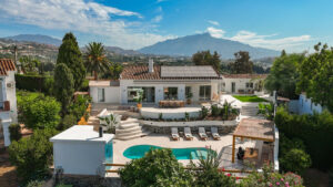 Esta preciosa villa de 4 dormitorios, completamente renovada, está a la venta en la tranquila y popular zona de Guadalmina Alta, Marbella. Situada al final de una calle apacible, esta luminosa y soleada vivienda combina estilo moderno, confort, privacidad y unas vistas espectaculares al mar y a la icónica montaña de La Concha, además de vistas a Gibraltar y Marruecos.