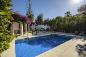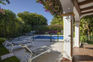 Esta villa de 4 dormitorios, 3 cuartos de baño combina perfectamente el encanto andaluz tradicional con interiores elegantes y contemporáneos y se encuentra en la zona codiciada de Guadalmina Alta.