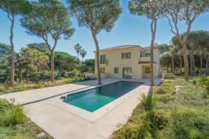 Esta luminosa villa independiente ofrece mucha privacidad, rodeada de numerosos pinos maduros y ubicada en un jardín paisajístico de 2.850 m², con un diseño muy atractivo que incluye piscina, una amplia terraza y zona de barbacoa. Además, cuenta con numerosas terrazas amplias y soleadas.