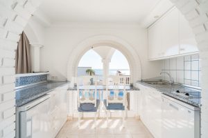 Además, la propiedad incluye un **apartamento de invitados independiente** con su propio dormitorio, salón, cocina abierta, baño y aseo, con acceso directo a la hermosa piscina de la villa. Incluso aquí, las vistas al mar siguen impresionando.