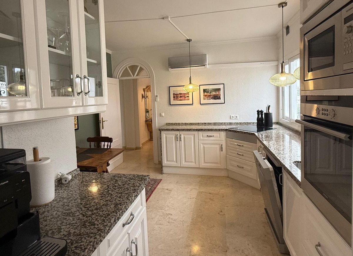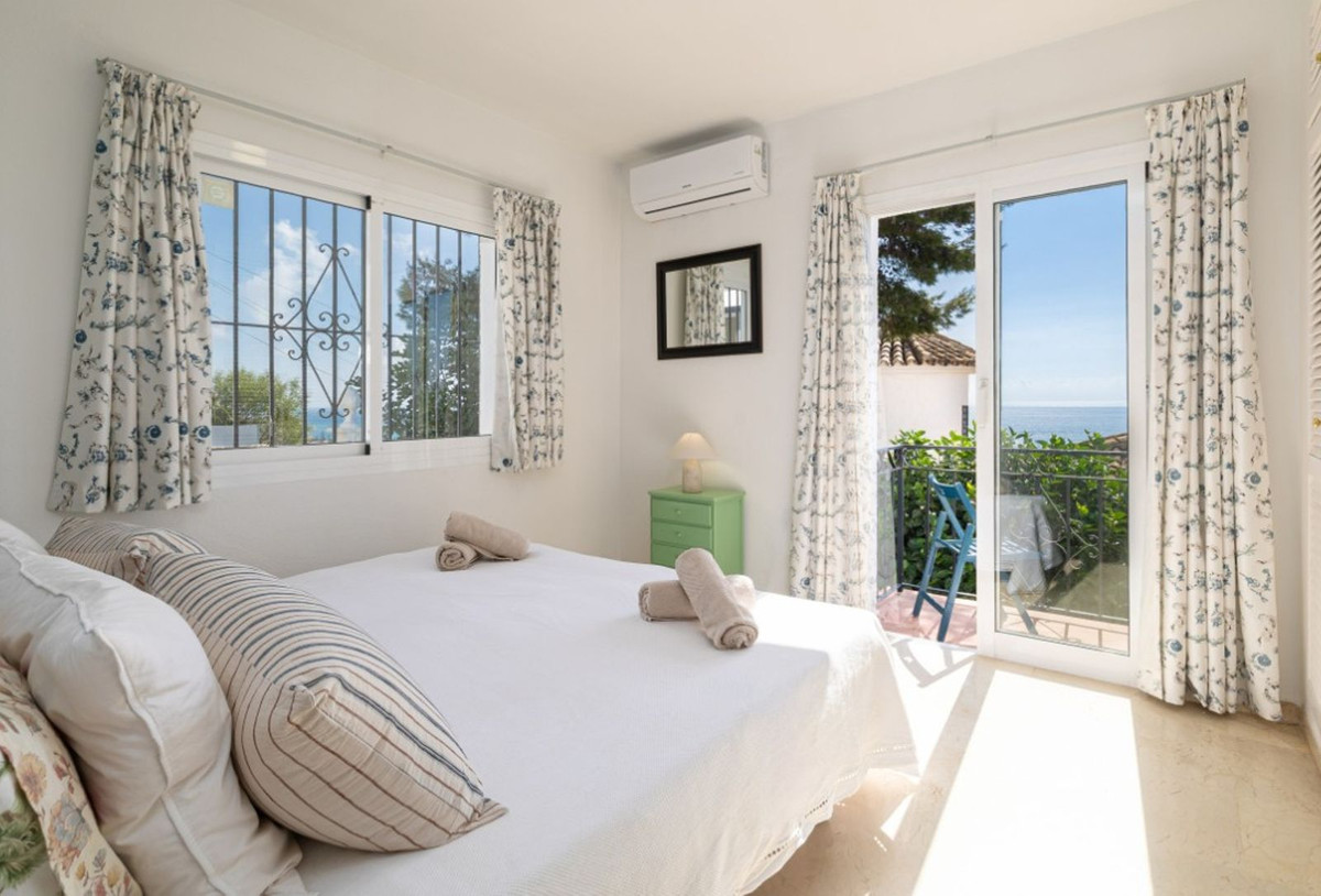 Además, la propiedad incluye un **apartamento de invitados independiente** con su propio dormitorio, salón, cocina abierta, baño y aseo, con acceso directo a la hermosa piscina de la villa. Incluso aquí, las vistas al mar siguen impresionando.