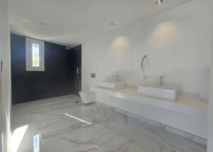 Con 297 m² construidos sobre una parcela de 2.389 m², la villa aprovecha la luz natural al máximo y conecta de forma fluida los espacios interiores y exteriores. Dispone de 4 dormitorios, incluyendo 2 en suite, más otro cuarto de baño completo y un aseo de invitados. La suite principal cuenta con un enorme vestidor, baño de diseño y acceso directo a la terraza principal.