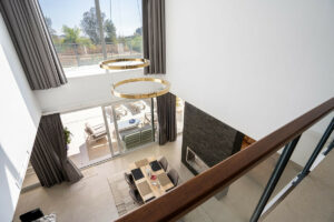 Un impresionante hall de entrada con techos de doble altura da la bienvenida al hogar, conduciendo a una moderna cocina totalmente equipada con electrodomésticos de alta gama, un luminoso salón con chimenea y un dormitorio de invitados con baño en suite. Amplias terrazas rodean toda la vivienda, creando una perfecta conexión entre el interior y el exterior.