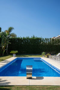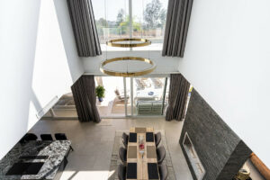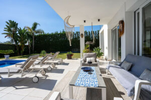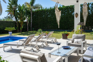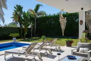 La villa está decorada con exquisito gusto y bañada de luz natural en todas sus estancias. Los techos de doble altura en el hall y el comedor aportan una mayor sensación de amplitud y elegancia.
