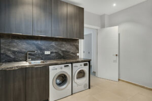 Un dormitorio adicional con baño, una gran zona de servicio con lavandería y trastero, además de un amplio espacio multifuncional ideal para sala de cine, gimnasio, oficina o zona de bienestar.