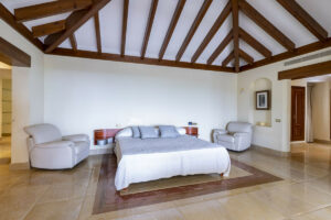 En la primera planta se encuentran dos amplios dormitorios en suite, incluido el gran dormitorio principal con vestidor y sala de estar privada. El segundo dormitorio también es espacioso y ambos disfrutan de unas impresionantes vistas al mar.