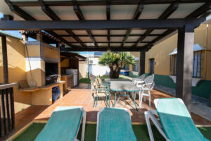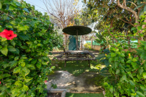 El exterior de la villa es igualmente impresionante. Una piscina cubierta ajustable permite disfrutar de un baño en cualquier época del año. El área de recreo incluye una zona de barbacoa, un comedor al aire libre y una auténtica barca de espetos, creando el ambiente perfecto para las reuniones sociales. El jardín privado está rodeado de árboles frutales, ofreciendo un espacio verde y tranquilo para relajarse.