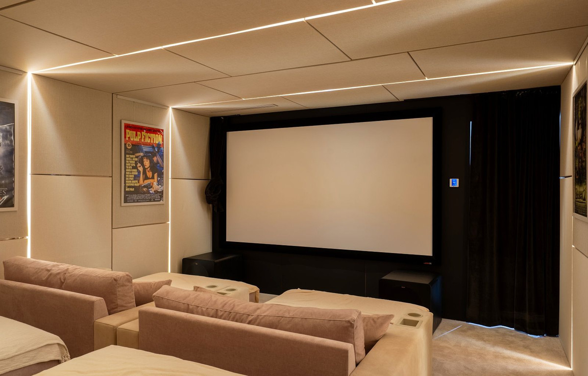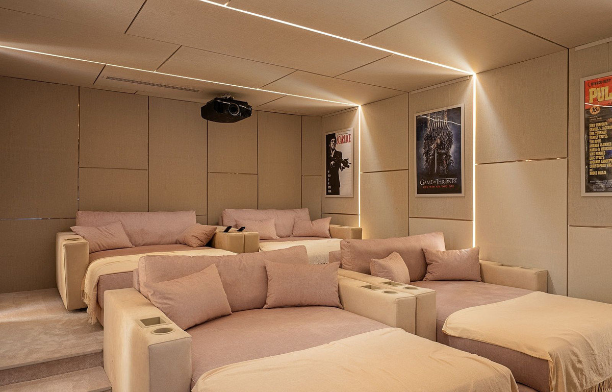 La planta inferior de la villa ofrece un cuarto dormitorio con baño, complementado por una variedad de instalaciones de ocio. Estas incluyen una zona de juegos, una impresionante bodega, sala de cine y un gimnasio totalmente equipado. Los tres niveles de la vivienda están conectados por un ascensor privado para mayor comodidad.