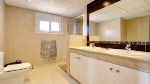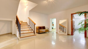 El nivel inferior de la villa ofrece un sinfín de posibilidades. Dispone de un amplio garaje con espacio para 2 o 3 coches, una segunda zona de estar, lavadero y trastero. Este espacio versátil puede transformarse fácilmente en sala de juegos, cine en casa, gimnasio o despacho.