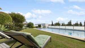 En la planta baja hay dos amplios dormitorios dobles con baño en suite, además de un práctico aseo de invitados. Uno de los dormitorios tiene acceso directo a la terraza, que comunica con el jardín y la gran piscina privada de 51,57 m².