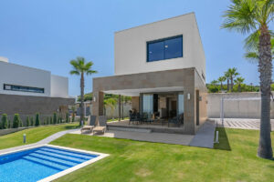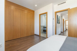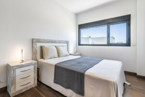 Esta impresionante villa, distribuida en dos plantas, ofrece cuatro amplios dormitorios, cada uno con armarios empotrados, persianas eléctricas y control individual de aire acondicionado. Los tres elegantes baños cuentan con el confort de la calefacción radiante en el suelo.