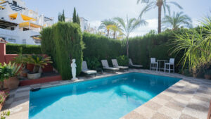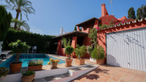Esta villa ofrece comodidad, privacidad y conveniencia en una zona residencial privilegiada a solo 1 km de Puerto Banús. Ubicada en una parcela de 512 m² con 204 m² construidos, la propiedad disfruta de acceso desde dos calles—Las Yedras y Las Camelias—y no tiene gastos de comunidad ni de garaje.