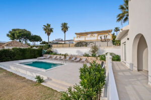 Exclusiva villa en Marbella situada a tan solo 5 minutos andando de la playa, en una ubicación privilegiada que combina tranquilidad, privacidad y cercanía al mar. La vivienda cuenta con 273 m² construidos y se distribuye actualmente en dos plantas, con la posibilidad de ampliar con una planta adicional, lo que aporta un gran potencial de revalorización.