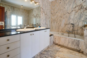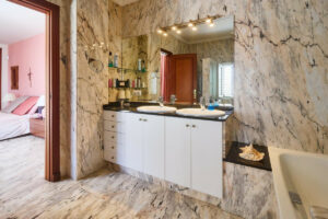 En la primera planta, la villa cuenta con tres habitaciones dobles, cada una con armarios empotrados y baño privado. Dos de las habitaciones tienen acceso a una terraza con magníficas vistas. Además, hay un pequeño trastero para mayor comodidad y orden.
