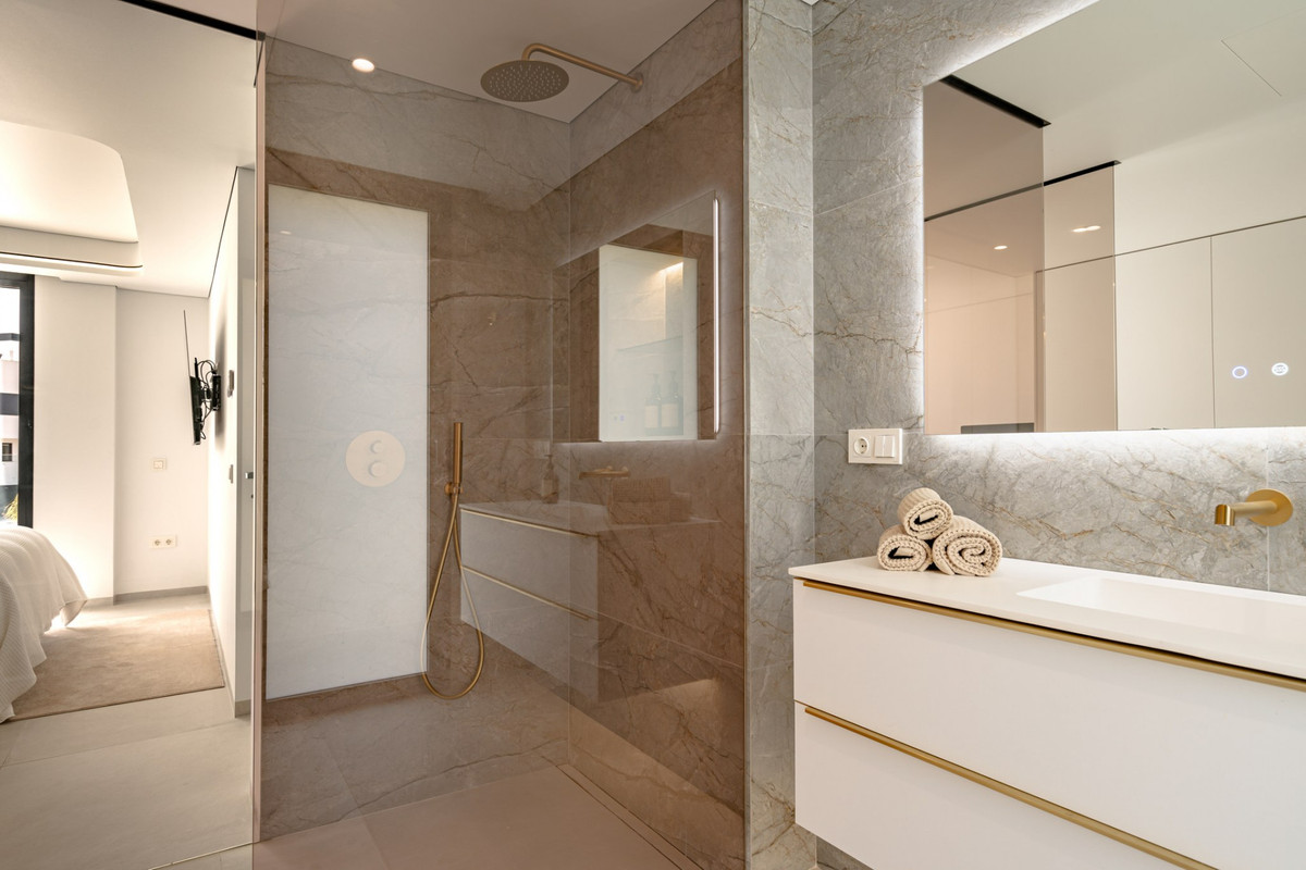 A tan solo unos minutos a pie de la playa, los campos de golf y el animado centro del pueblo, esta residencia se convierte en una oportunidad excepcional para disfrutar del estilo de vida andaluz con todas las comodidades al alcance. La vivienda ha sido concebida con acabados de alta gama y un enfoque en la luminosidad, logrando un espacio funcional y sofisticado.