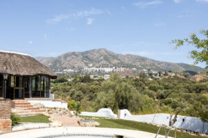 El exterior de la finca está diseñado para disfrutar al máximo del estilo de vida al aire libre. La entrada principal cuenta con un aparcamiento con capacidad para ocho vehículos, mientras que en el lateral, encontrarás un garaje, zona de barbacoa y un amplio comedor exterior pavimentado. La parte trasera de la propiedad es un auténtico oasis con una piscina privada, una relajante zona chill out, un baño exterior y cuidados jardines que invitan a la tranquilidad y el descanso.