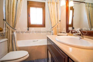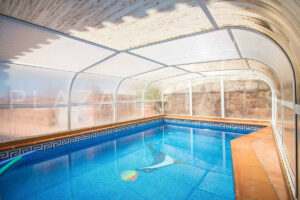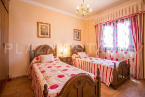 La vivienda construida con materiales de primera calidad está distribuida en dos plantas; consta de una vivienda principal con 2 dormitorios, 2 baños, salón, comedor, cocina, sala de estar, una amplia terraza cubierta con cocina exterior y piscina cubierta privada, así como una gran cochera desde donde se accede a un pequeño apartamento de un dormitorio con cocina, salón con chimenea, baño y dormitorio.