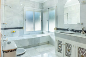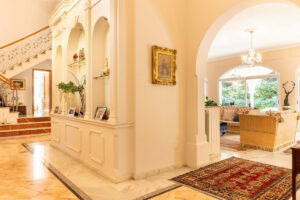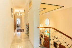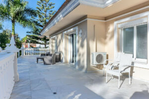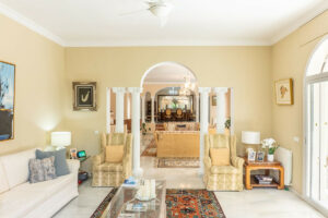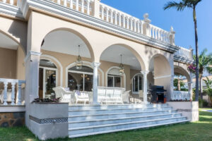 Esta magnífica villa de estilo tradicional se encuentra en la exclusiva zona de La Nueva Milla de Oro, dentro de la prestigiosa urbanización El Presidente, a solo 50 metros de la playa y de su recién construido paseo marítimo. Su ubicación es excepcional, rodeada de todo tipo de servicios y a tan solo cinco minutos en coche de Puerto Banús y diez minutos de Marbella y Estepona. La propiedad se sitúa sobre una parcela de 1.275 m² y ofrece 539 m² construidos, con 461 m² útiles y 80 m² de terrazas, todas orientadas al sur, lo que garantiza una luminosidad extraordinaria durante todo el día.