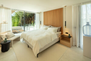 Entre y descubra una cocina de vanguardia, un refinado comedor y un acogedor salón, todo ello enmarcado por líneas arquitectónicas contemporáneas y una decoración de buen gusto. El dormitorio principal es un verdadero santuario, con un cuarto de baño tipo spa y acceso a vistas a los jardines. Una característica única es la transición perfecta entre el interior y el exterior, con grandes puertas correderas que se abren a un oasis privado con una espectacular piscina, un exuberante jardín y elegantes zonas chill-out, perfectas para el entretenimiento o para relajarse bajo el sol mediterráneo.