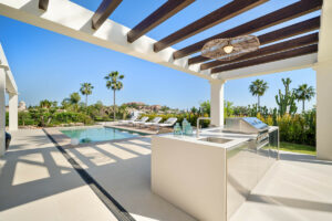 Bienvenido a Casa Olivo, una villa de una sola planta bellamente rediseñada, situada en el corazón de Nueva Andalucía, a pocos minutos del famoso campo de golf Los Naranjos. Diseñada y desarrollada por Casas Fintech, esta exquisita vivienda de 4 dormitorios combina la elegancia mediterránea con las comodidades contemporáneas. Situada en una parcela elevada y frondosa, la villa ofrece privacidad, tranquilidad y unas vistas impresionantes del valle y del mar, a la vez que se encuentra a pocos minutos de los mejores campos de golf, restaurantes y playas de Marbella.