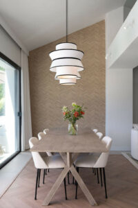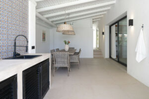 En el interior, disfrutarás de un diseño de planta abierta con techos altos, ventanales de suelo a techo, una acogedora chimenea y elegantes suelos de madera. La cocina de diseño con acabados en nogal, encimeras de mármol y electrodomésticos Miele es perfecta para los amantes de la cocina.