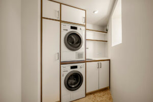 El corazón de la villa es su cocina de diseño Ernesto Meda, equipada con electrodomésticos Miele y grifería Fantini Rubinetti (Italia). El espacio se integra perfectamente con comedor y salón, abriéndose a la terraza y la piscina privada. Cada detalle ha sido cuidadosamente seleccionado: desde los sistemas de puertas arquitectónicas invisibles, hasta los armarios modulares italianos de diseño limpio y acabados de alta gama. Incluso los tiradores italianos con más de 100 años de tradición aportan ergonomía y claridad estética.