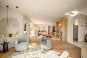 El mobiliario refleja el compromiso con la excelencia: Saba Italia con sofás modulares de máxima comodidad, Ditre Italia y Twils con camas elegantes y ergonómicas, y piezas de Zanotta y Mogg que añaden personalidad artística. Se suman marcas nórdicas y mediterráneas como &Tradition (Dinamarca), Punt Mobles (España), Layered (Suecia), Hay (Dinamarca) y Ferm Living (Dinamarca) para accesorios y detalles decorativos.