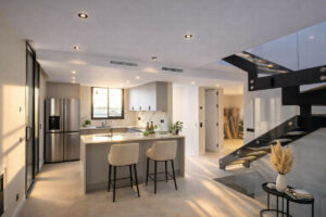 Distribuida en tres plantas, la villa cuenta con 4 elegantes dormitorios y 4 baños de diseño. La propiedad dispone de espacio preparado para la futura instalación de un ascensor (actualmente no instalado), garantizando comodidad y accesibilidad a largo plazo.