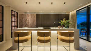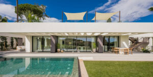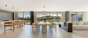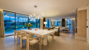 Una villa de diseño excepcional, ubicada en primera línea de golf, es sinónimo de entretenimiento y golf. Al entrar en la villa, le da la bienvenida un moderno y elegante espacio con una bonita cocina de diseño abierta al comedor y la sala de estar. A través de las amplias puertas de cristal de suelo a techo, disfrutará de unas impresionantes vistas al campo de golf de Los Naranjos.
