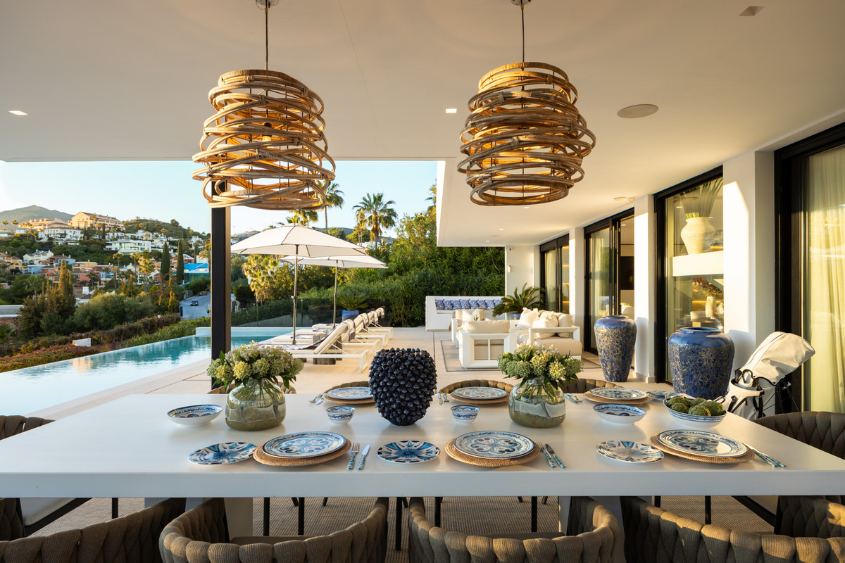 Amplias terrazas abiertas a una piscina infinity y elegantes zonas de estar al aire libre, diseñadas para entretenerse sin esfuerzo en un contexto de vegetación. En el interior, las ventanas de suelo a techo bañan los interiores con luz natural, mejorando el flujo sin costuras entre los espacios vivos refinados y el exterior. La cocina abierta, equipada con electrodomésticos Miele Premium, combina diseño elegante con funcionalidad cotidiana.