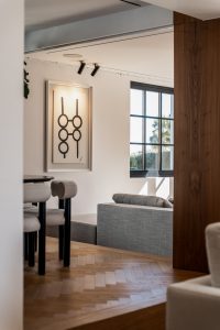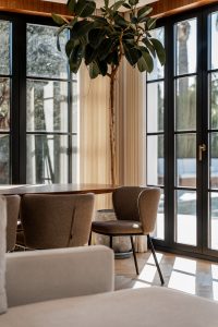 No es la típica villa del Valle del Golf. Ha sido rediseñada con una dirección arquitectónica clara, donde proporciones, materiales y distribución han sido cuidadosamente seleccionados. Desde la entrada se percibe el nivel de detalle: suelo de roble en espiga, carpintería de nogal a medida, frentes acanalados y mármol veteado oscuro, todo integrado con coherencia y equilibrio.