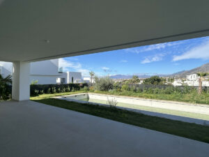 Los elementos clave del diseño incluyen amplias áreas de estar abiertas y grandes ventanales para maximizar la luz natural y aumentar el espacio. Las ventanas de tamaño completo pueden ocultarse en las paredes, conectando las áreas de estar interiores y exteriores, lo que le permite disfrutar del clima único de Marbella durante todo el año. La parcela está cuidadosamente planificada y bellamente ajardinada, compuesta por dos partes, con un patio además de la zona principal. Hay un gran aparcamiento privado para tres coches.