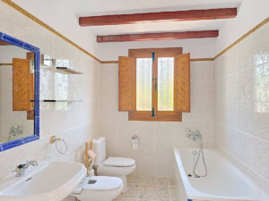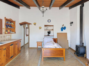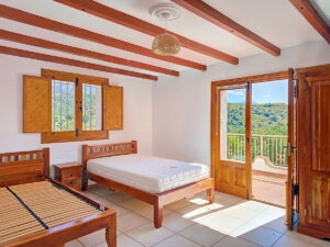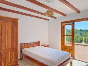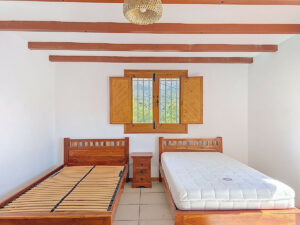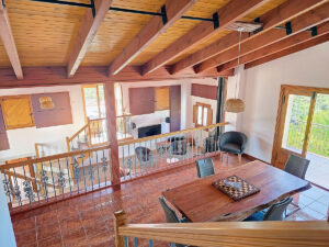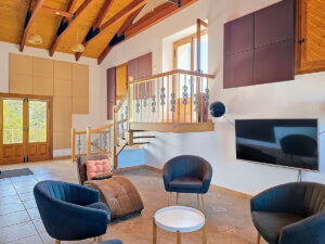 La casa principal cuenta con tres dormitorios, cada uno con baño privado y acceso directo a las terrazas, integrando a la perfección la vida interior y exterior. El luminoso salón principal, de planta abierta, se conecta con la terraza superior, ofreciendo un entorno perfecto para recibir invitados o relajarse con impresionantes vistas a las montañas como telón de fondo.