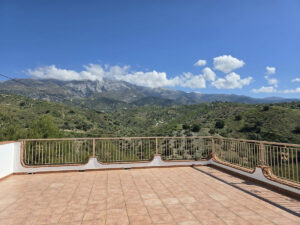 Bajo la villa se encuentra un espacioso garaje, accesible a través de unas impresionantes puertas de madera a medida, que ofrece un gran potencial como taller, gimnasio, estudio o, fácilmente, cuatro dormitorios más. Alrededor de la casa se encuentran casi 100 m² de terrazas y soláriums, con impresionantes vistas panorámicas a la majestuosa Sierra de Almijara.