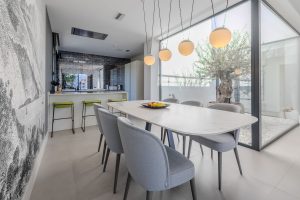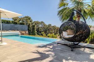 En la planta baja nos encontramos el hall de entrada que da acceso al amplio y luminoso salón y la moderna cocina abierta con salida al jardín y la piscina privados, también disponemos de un dormitorio con baño en suite y un aseo para invitados.