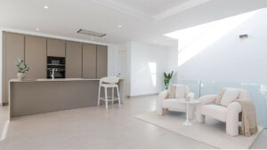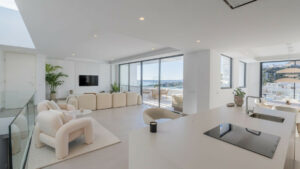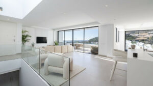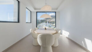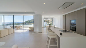 El espacio principal combina cocina de diseño, comedor y sala de estar en un concepto abierto que fluye hacia una terraza orientada al oeste. Aquí podrás disfrutar de la vida al aire libre en una espectacular terraza, de grandes dimensiones y una piscina privada.