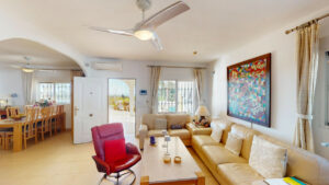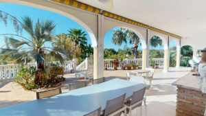Esta encantadora villa en Vélez-Málaga combina confort, amplitud y un diseño que integra tradición y modernidad. La propiedad cuenta con tres dormitorios y dos baños, y un diseño de planta abierta que conecta de manera fluida el salón, el comedor y la cocina, creando un ambiente luminoso y acogedor. El salón dispone de una acogedora chimenea con repisa de madera, perfecta para las noches más frescas, y grandes ventanales que inundan la casa de luz natural y ofrecen vistas del entorno. La cocina moderna está equipada con elegantes armarios, encimeras de granito y electrodomésticos de acero inoxidable, incluyendo placa de gas y campana extractora. La villa dispone de un espacio destinado a oficina y una decoración que combina elementos contemporáneos y tradicionales, con detalles artísticos que aportan color y personalidad a las estancias. En el exterior, la propiedad destaca por su amplia parcela llena de diversos árboles frutales, incluyendo frutas exóticas, además de un pequeño invernadero y un trastero. La vivienda cuenta con una cochera, piscina privada con altavoces bajo el agua y sistema de natación contracorriente, zona chill out y en la terraza una zona de barbacoa, perfecta para disfrutar de comidas al aire libre mientras se contemplan espectaculares vistas al mar y a la montaña. Esta villa representa una oportunidad única para quienes buscan un hogar con encanto, confort y amplias comodidades en la hermosa región de Málaga. Estamos encantados de poder presentar esta propiedad a usted pronto, ya sea personalmente o a través de la visión virtual. Porque este mundo, es único – como nuestra Axarquía. En Andalucía. En la Costa del Sol. Aquí, en el lado soleado de la vida…