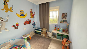El apartamento 1 tiene una pequeña cocina, un cuarto de baño con ducha y dos habitaciones, ambas con acceso a la terraza y a la zona de la piscina.