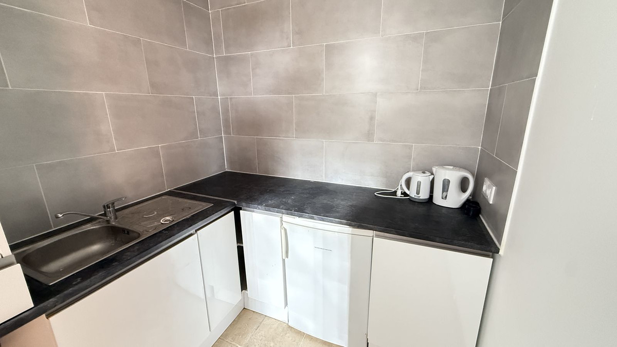 El apartamento 2 es un gran estudio con puertas dobles que dan acceso a la terraza y a la piscina, una cocina equipada de buen tamaño y un cuarto de baño. Hay mucho espacio para tener una zona de dormitorio y otra de salón-comedor, o incluso para construir una pared y crear un dormitorio independiente.